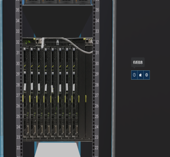 机位统计可视化:在3D可视化环境中透视目前机房环境中已经使用的机位与剩余机位的情况。